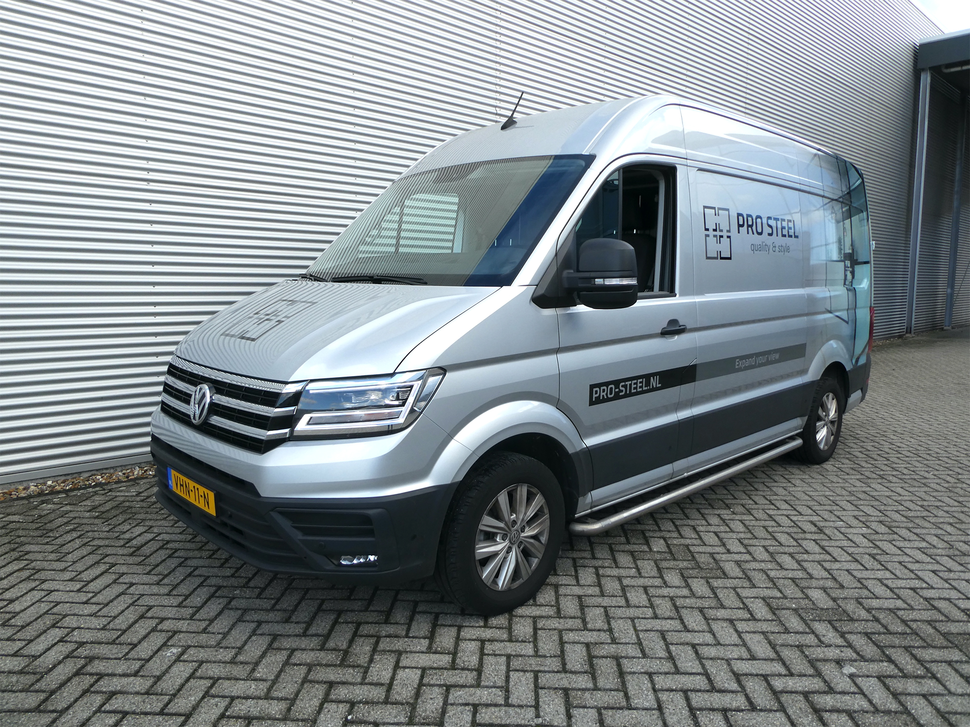 Een project waar we onze nieuwe HP Latex 800W printer echt een keer goed konden uit proberen. Pro Steel is leverancier van stalen deuren en kozijnen en wilden graag dat foto's in het niets uitlopen op de zijkanten van de bedrijfswagens. Op een witte bedrijfswagen is dit al een uitdaging, maar op een zilveren bijna onmogelijk.